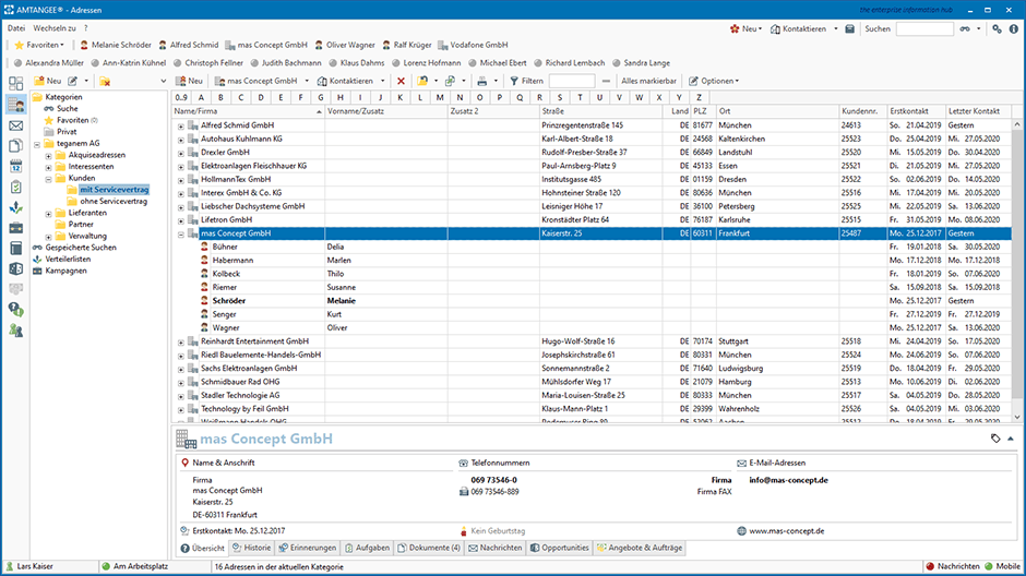 AMTANGEE ist eine (mobile) CRM-Software, die Ihnen modernes Kundenmanagement im Innen- und Außendienst bietet. Verwalten Sie Ihre Kunden, erledigen Sie Ihre Tageskorrespondenz und erhöhen Sie die Wirkung Ihres Vertriebs.